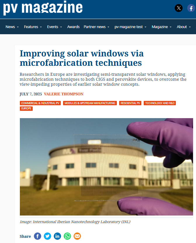 The article, titled “Improving solar windows via microfabrication techniques”, highlights the project’s progress in using advanced microfabrication methods to create semi-transparent photovoltaic (PV) windows that generate electricity without compromising natural light or aesthetics.